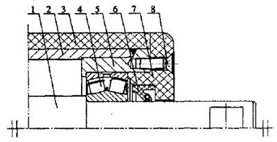 “托輥”密封件是利用改變物體流動(運動)方向的方法,在中封和端封形成型防水腔和偏心球面氣旋腔,從而達到軸承防水、防塵的功能。阻止了淋水、粉塵、煤泥等外物作用下,產生軸向流動狀況而進入托輥密封結構中的趨勢,其結構簡單。有效保證并延長了托輥中軸承的正常使用壽命。