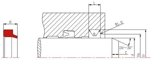軸徑 d h9 溝槽底徑 D H9 槽寬 L +0.2 D1 h11 H R1≤ C≥