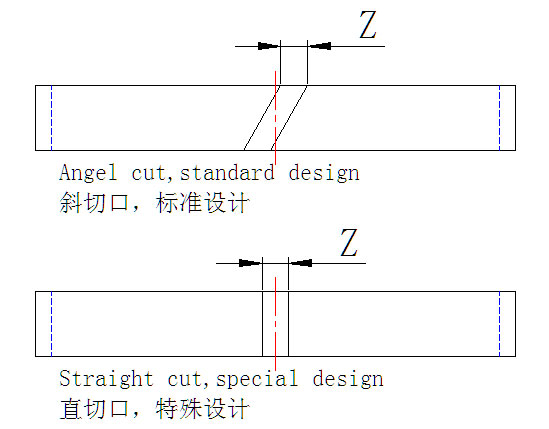| 斜切口是常用的切口方式。也可提供直切口。 | ||