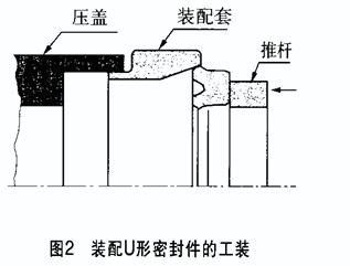 裝配唇形密封件時(shí)沒(méi)有使用專(zhuān)用工具,或長(zhǎng)期懸掛在鐵絲上存放,均會(huì)造成唇形密封件損壞而漏油。圖2為U形密封件從唇部安裝時(shí)采用的工裝,它能地避免唇形密封件的唇頂被損傷。當(dāng)配合面的倒角不當(dāng)時(shí),可在軸肩倒150~30°角,以避免唇形密封件損傷;如果因結(jié)構(gòu)限制不能倒角時(shí),應(yīng)在裝配時(shí)使用專(zhuān)用套筒等工裝。顆粒性雜質(zhì)進(jìn)入系統(tǒng)后,附著在唇形密封件的配合面上,會(huì)造成唇形密封件受損。應(yīng)按時(shí)更換油,定期清潔和更換濾油器,以避免唇形密封件劃傷。