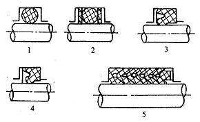 常用活塞桿用密封結構與密封圈如圖1所示,密封圈材質與使用條件見表1。