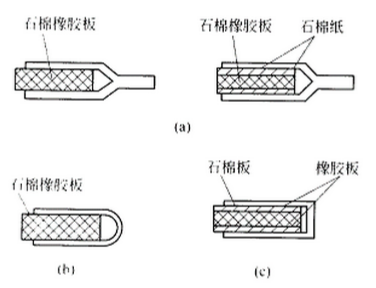 圖1(c)為厚0.4~0.8mm的帶狀聚四氟乙烯薄膜,將它兩端熱合后抱在環狀的芯材外面呈U狀,制造簡便,適用于直徑較大的設備。