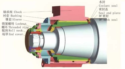油膜軸承又稱液體摩擦軸承,它是理想的液體摩擦狀態的滑動軸承。軋機在工作過程中,利用液體潤滑在錐套與襯套之間的模形間隙中形成完整的壓力油膜,產生模形效應,油膜完全將高速相對運轉的錐套、套間隔開,而不發生直接的金屬接觸。油膜軸承在旋轉過程中具備了很強的承載能力。軋機油膜軸承的工作環境非常惡劣,除了要經受大量冷卻水的沖刷,還要受到軋制過程中產生的大量氧化鐵皮等雜質侵人油膜軸承的危險,與此同時還需要滿足軋制速度在 0-40 m/s 的變化,及環境溫度的變化等。為了使油膜軸承能適應這種環境,有良好效果的密封就非常重要了。隨著我國現代大型軋機設備及軋機油膜軸承的高速發展,密封裝置作為油膜軸承非常重要的一個部分,密封件技術和結構也逐步進行了改進。在我國曾經廣泛應用在大型軋機上的是X型密封圈,以及在X型密封圈基礎上改進后使用更廣泛,目前最先進的是DF型密封圈。