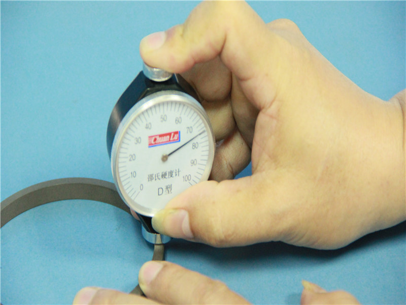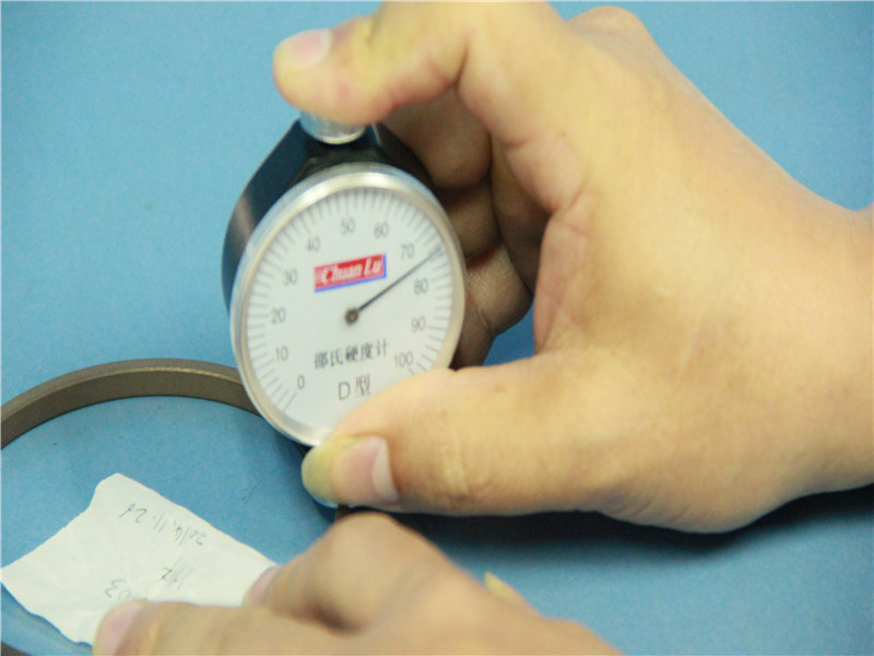首先,我公司技術人員采用的測量工具是普遍的邵氏硬度計來測量每一個聚四氟乙烯密封圈的硬度。