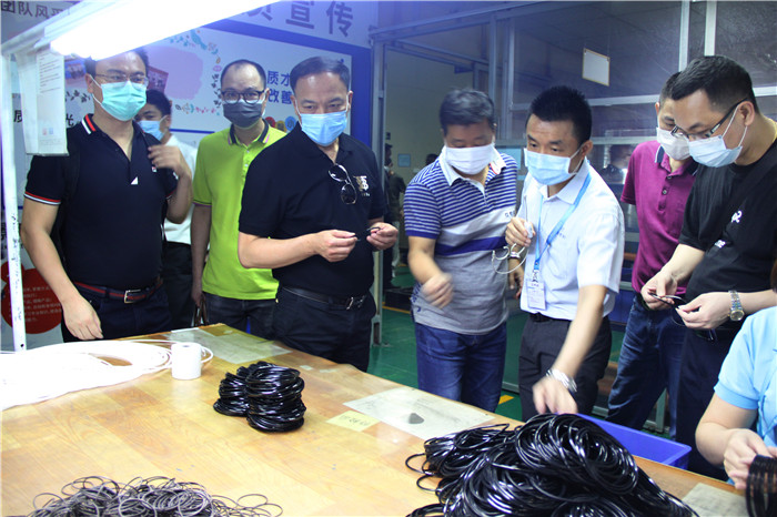 從原材料倉庫,到生產車間,到數控加工中心,再到品質檢查部,最后產品記錄入庫。一覽無遺的展示在商會同仁的眼中,這些都讓眾人感受到東晟密封的專業素質。