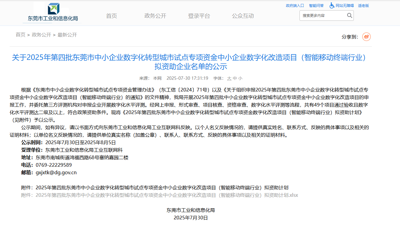 近日,東莞市工業和信息化局發布《關于2025年第四批東莞市中小企業數字化轉型城市試點專項資金中小企業數字化改造項目(智能移動終端行業)擬資助企業名單的公示》,廣東東晟密封件科技有限公司(下稱“東晟密封件”“DSHmf.com”)憑借在密封件領域數字化改造的深厚積累與亮眼創新成果,成功通過驗收且數字化水平評測達二級以上,成為本次49個通過項目之一。這一榮譽標志著東晟密封件在密封件行業的數字化(智造)水平已處于領先地位。